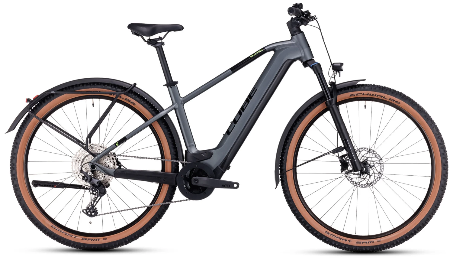 Oft kommt es auf die Details an – und beim Reaction Hybrid Allroad lesen sich diese wie folgt: Schutzbleche, Gepäckträger, Seitenständer, Beleuchtung und die Option, eine versenkbare Sattelstütze nachzurüsten. Aber das ist noch lange nicht alles! Das Chassis ist so clever und formschön designt, dass der hochkapazitive Bosch Akku – jetzt sogar bei kleineren Rahmengrößen mit 750 Wh – kaum auffällt. Was aber auffällt, ist der kraftvolle Vortrieb dank leistungsstarkem Bosch CX Motor der vierten Generation mit Smart System! Die Agile Ride Geometry sorgt dabei für ein erwartungsgemäß zuverlässiges Handling. Den Rahmen gibt es auch als Tiefeinsteiger, außerdem in der neuen Größe S mit 27.5 Zoll Laufrädern – da ist für alle Anforderungen die richtige Passform mit dabei. Gut, dass die Kabelzüge im Inneren verlaufen, denn das reduziert den Wartungaufwand auf ein Minimum und dir bleibt mehr Zeit zum Biken!