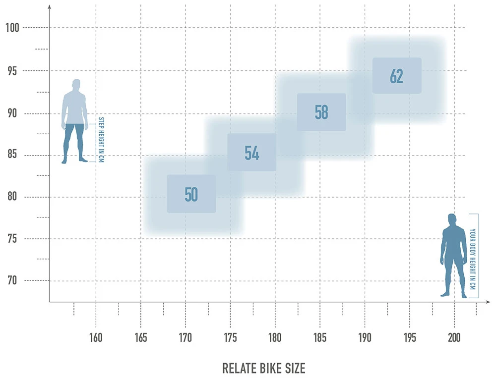 Mit Hilfe unserer Grafik wollen wir Dir eine Empfehlung bei der Suche nach Deiner richtigen Rahmengröße geben. Neben Schrittlänge sowie Körpergröße spielt natürlich auch Dein persönlicher Fahrstil, Einsatzbereich sowie Vorliebe eine große Rolle. Wenn Du mit Deinen Angaben im Grenzbereich liegen solltest, kannst Du zwischen zwei Rahmenhöhen wählen: die kleinere Rahmengröße ist agiler/wendiger/verspielter, die nächstgrößere Rahmenhöhe laufruhiger/spurtreuer.